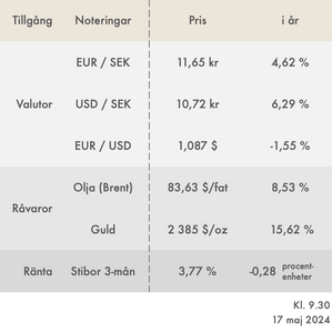 Aprils efterlängtade amerikanska KPI-siffra kom in i stort sett som förväntat på 3,4 procent och den amerikanska inflationen har legat på 3-4 procent sedan ett år tillbaka. Den bredare makrobilden tyder på att Fed har lyckats lägga locket på inflationsuppgången efter den oväntade ökningen av tillväxten mot slutet av förra året. Den stabila inflationen uppskattas av aktiemarknaden, och det finns hopp om att inflationen sakta men säkert ska ner mot 2 procent.
